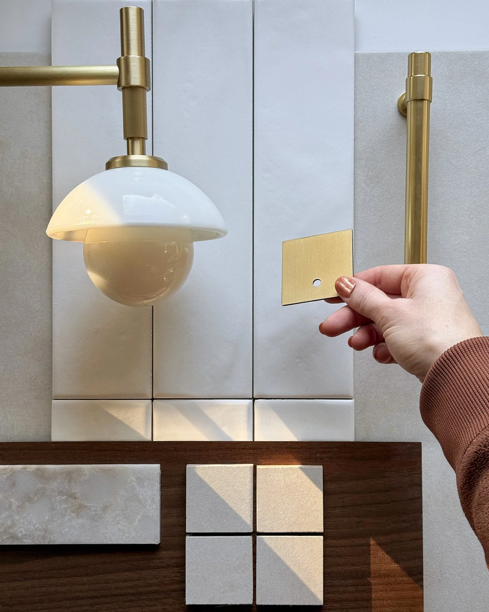 As I mentioned earlier, I’m a brass lover. But not all brasses are created equal in my eyes. In the kitchen, we have unlacquered brass that develops a natural patina over time, adding warmth and character. For the bathroom, I wanted a brass finish that offered that same richness and depth, but without showing as much visible wear over time.