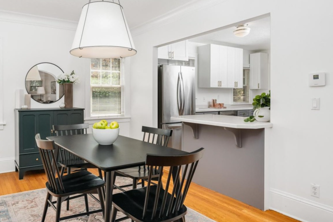 Removing the peninsula opened a clear path from the front door through the dining room, into the kitchen, and out to the backyard. The kitchen stopped feeling like a bottleneck and became part of the natural flow of the house.