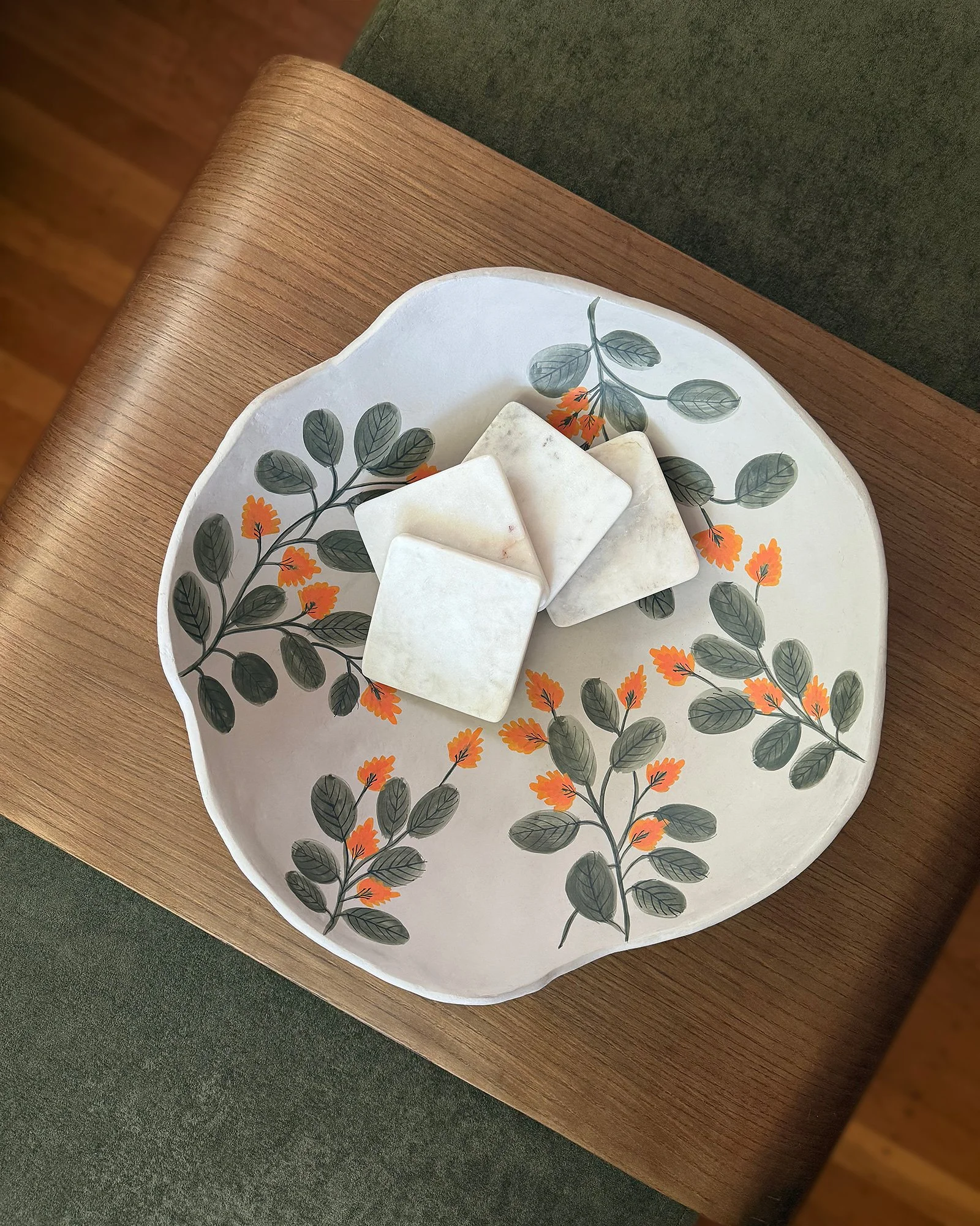 Created as an alternative to the home’s formal living area, this intimate lounge was designed for cozy evenings watching TV while keeping the adjacent dining room feeling elevated. Painted in Benjamin Moore’s Early Sunset, a hue inspired by the desert golden hour, the space balances warmth with refinement.